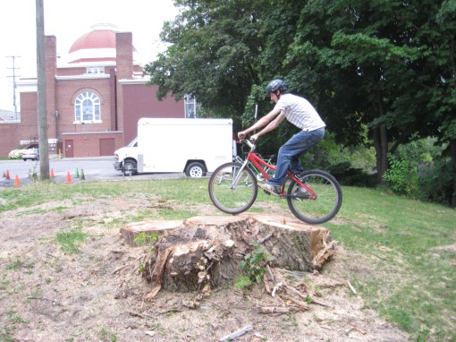 Greg floats up – note his rear wheel hasn’t touched down yet