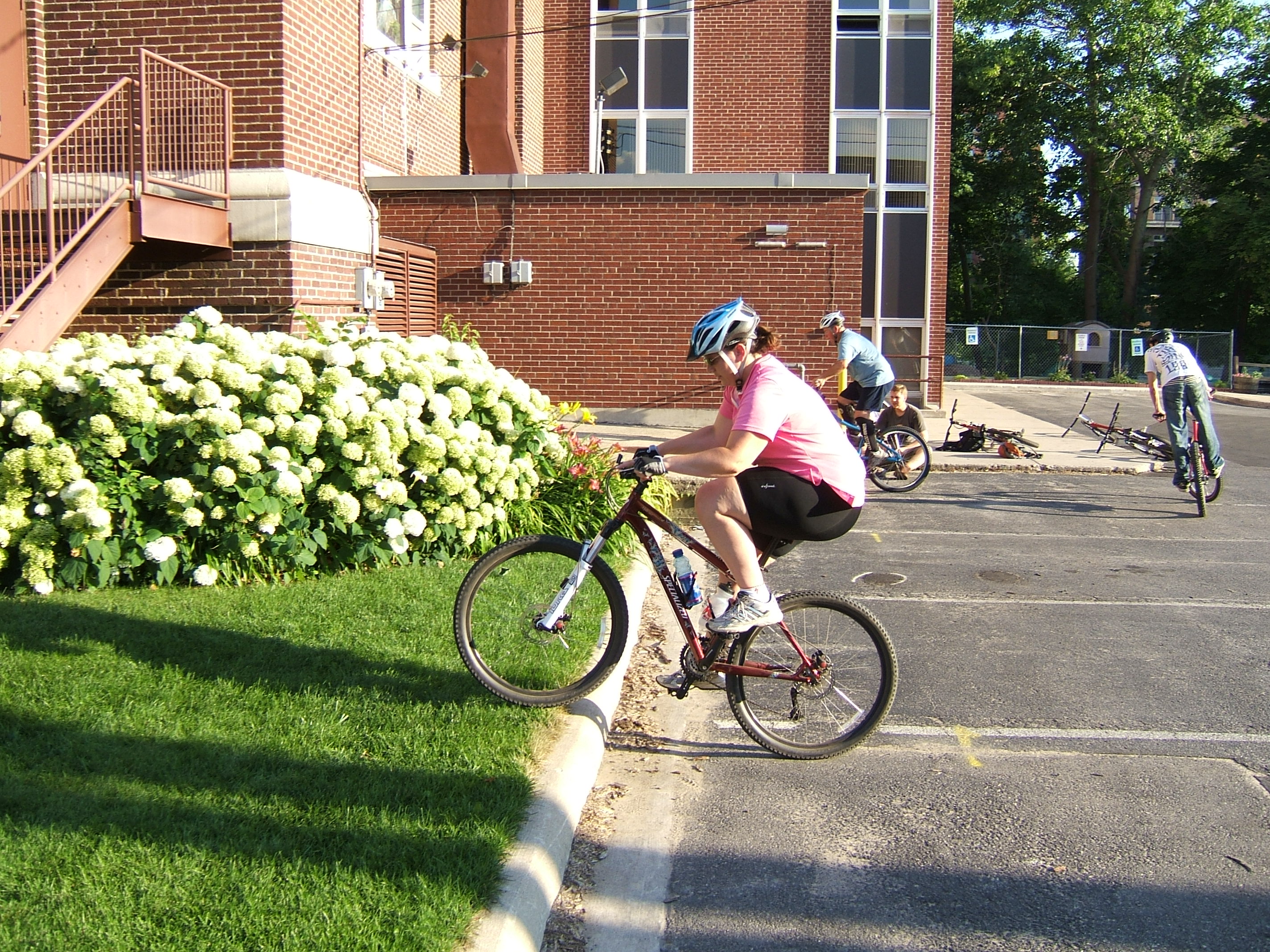 Sarah wheelie up on the curb