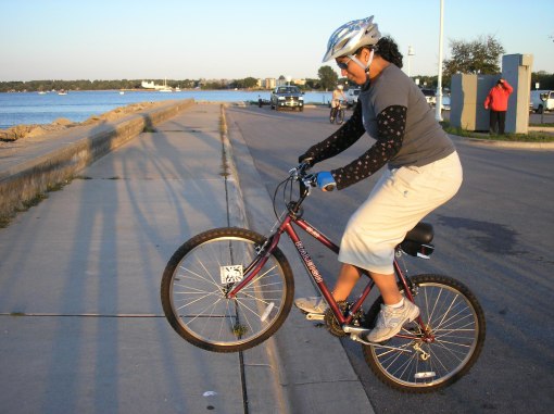 2WT rode on without me. » Alisa with a nice pedal kick to float the front tire over the curb