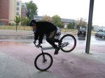 Matt has improved leaps and bounds since moving to Alpena. Scott is dialing in a mighty impressive front to rear wheelswitch move. Dan is totally comfortable on the rear wheel and is starting to increase his pedal kick distance. Bill showed up with some upgrades on his singlespeed – big tires, wider bars, crankset with a bashguard, trials gear, and cross country gear – very sweet.