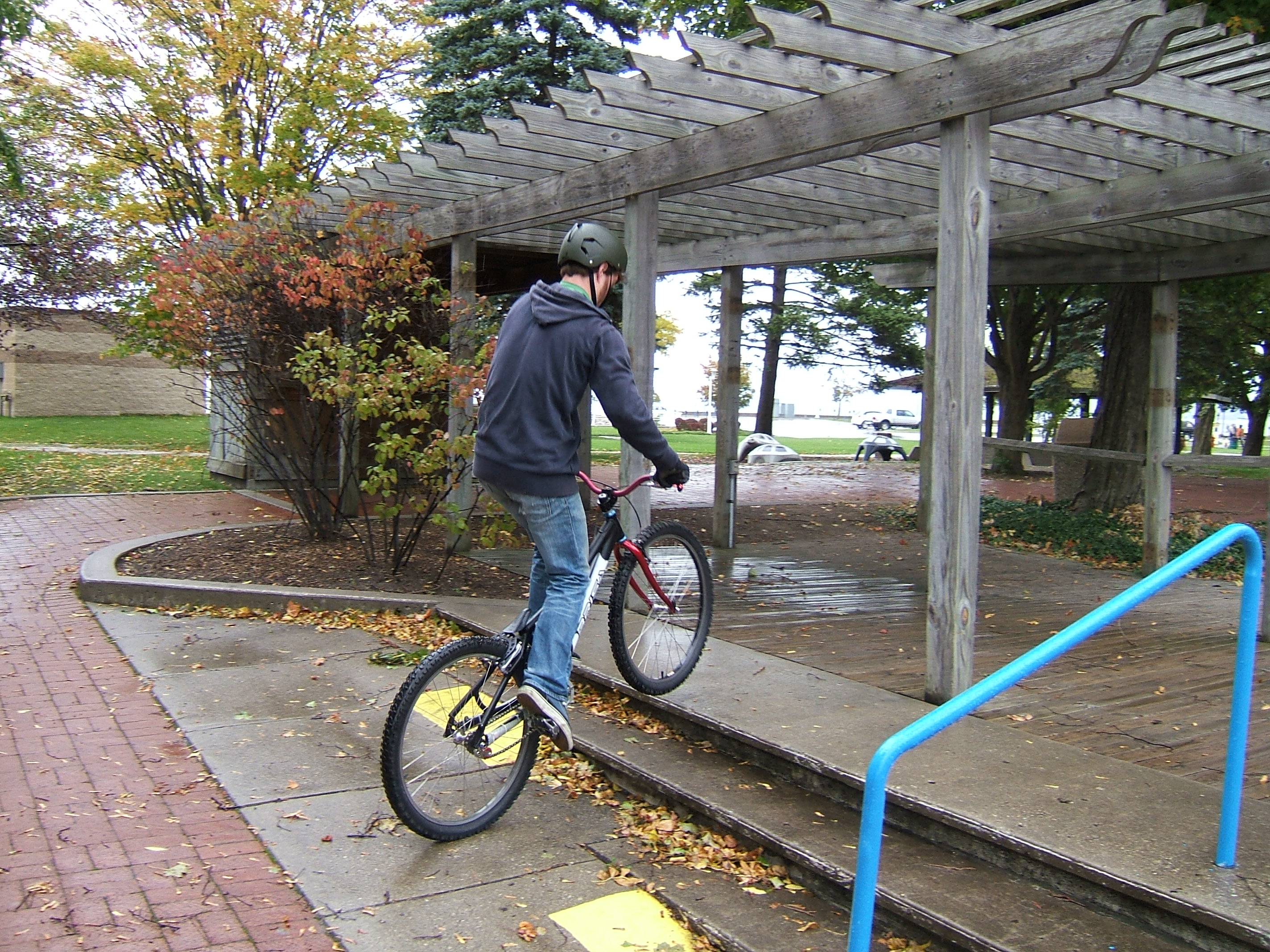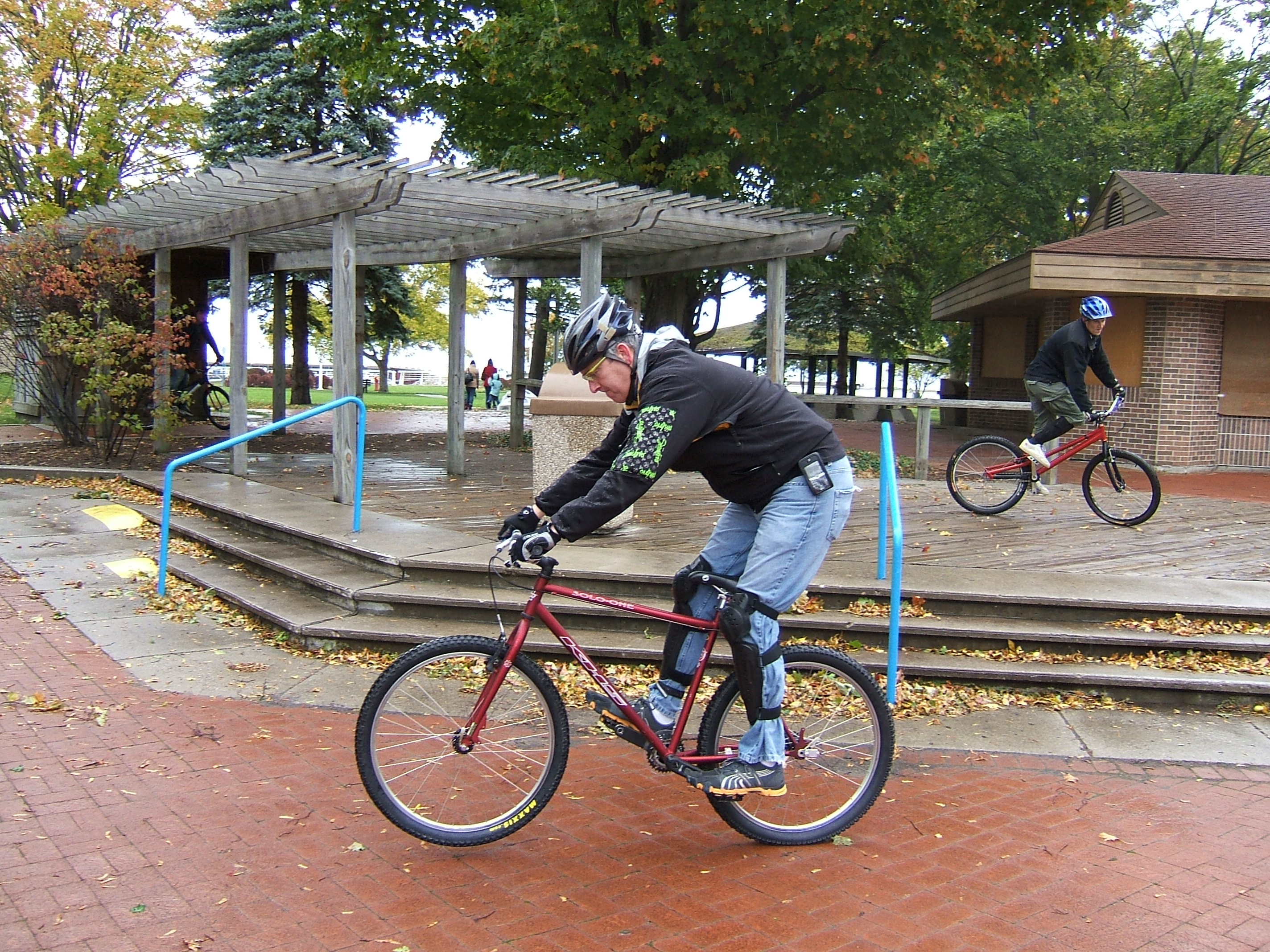 Matt has improved leaps and bounds since moving to Alpena. Scott is dialing in a mighty impressive front to rear wheelswitch move. Dan is totally comfortable on the rear wheel and is starting to increase his pedal kick distance. Bill showed up with some upgrades on his singlespeed – big tires, wider bars, crankset with a bashguard, trials gear, and cross country gear – very sweet.