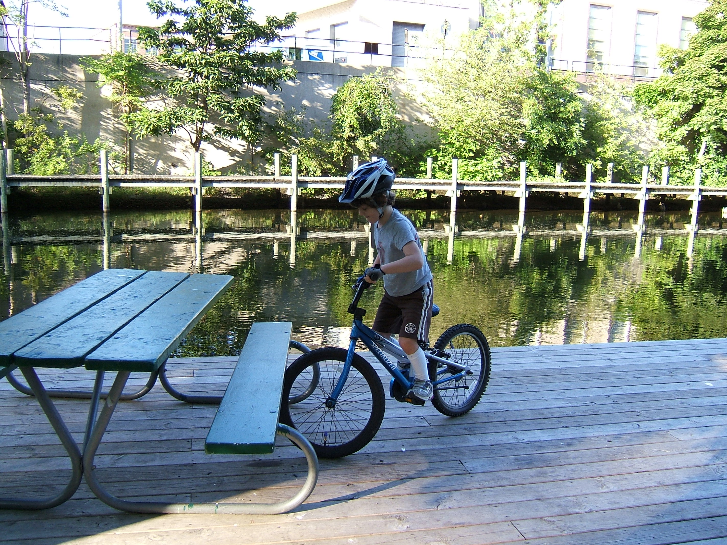 - JP attempting to go from rock to picnic table