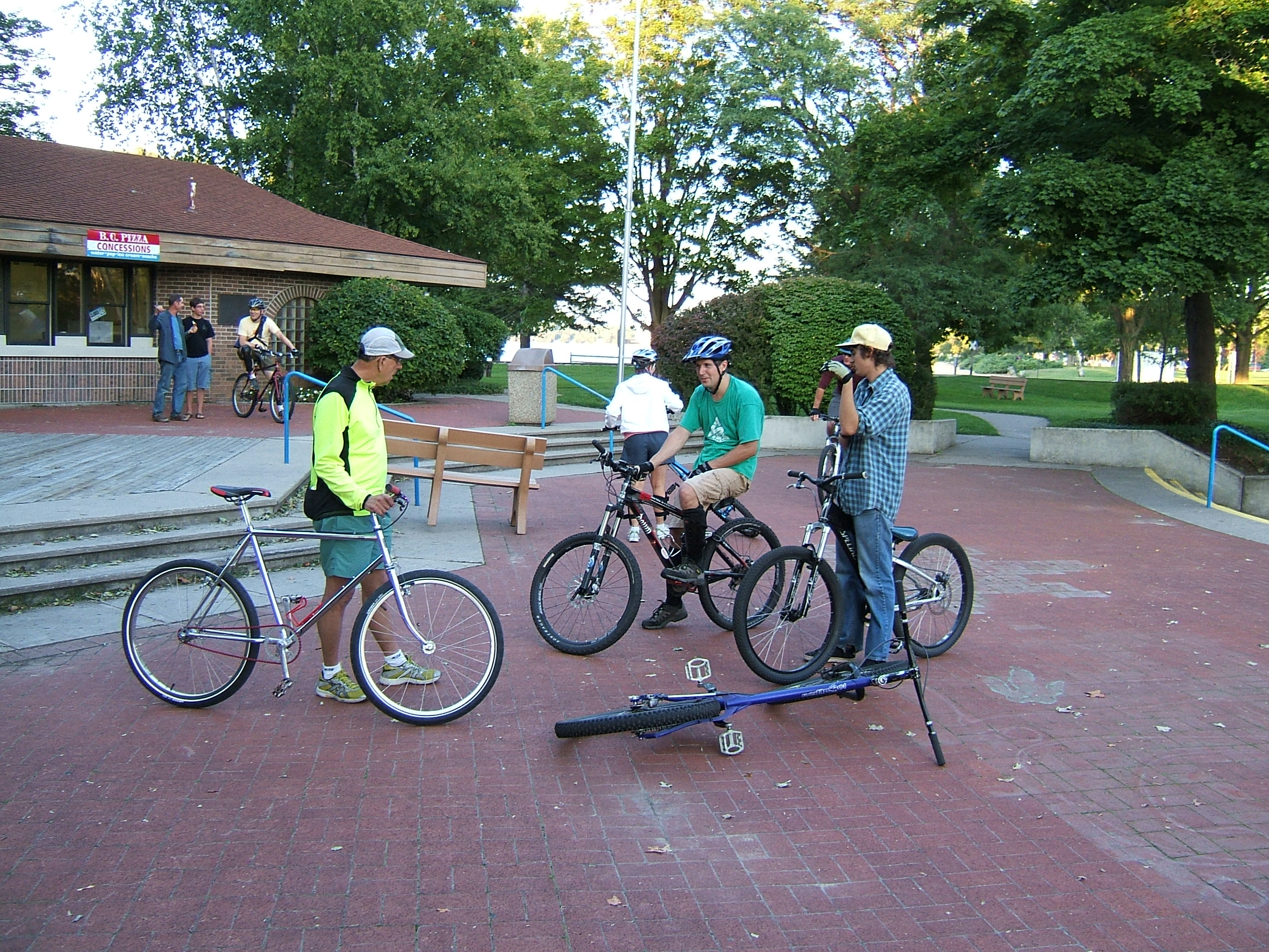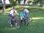 1 09 2009Perfect ride tonight. New riders Steve and John joined us and fit right in. Both were picking things up quickly. Bill gets the headline of the night with his breakthrough of being light on the pedals when attempting his nose wheelies. He immediately transfered this to getting over obstacles and mastered his nemesis rock at the zoo. Nice work Bill!